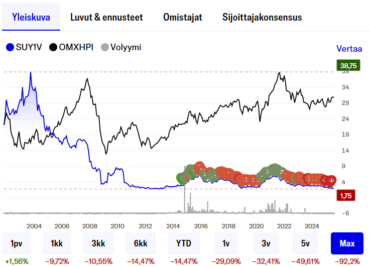 Throughout its stock market history, Suominen has managed to cause its shareholders headaches and a decline in value.