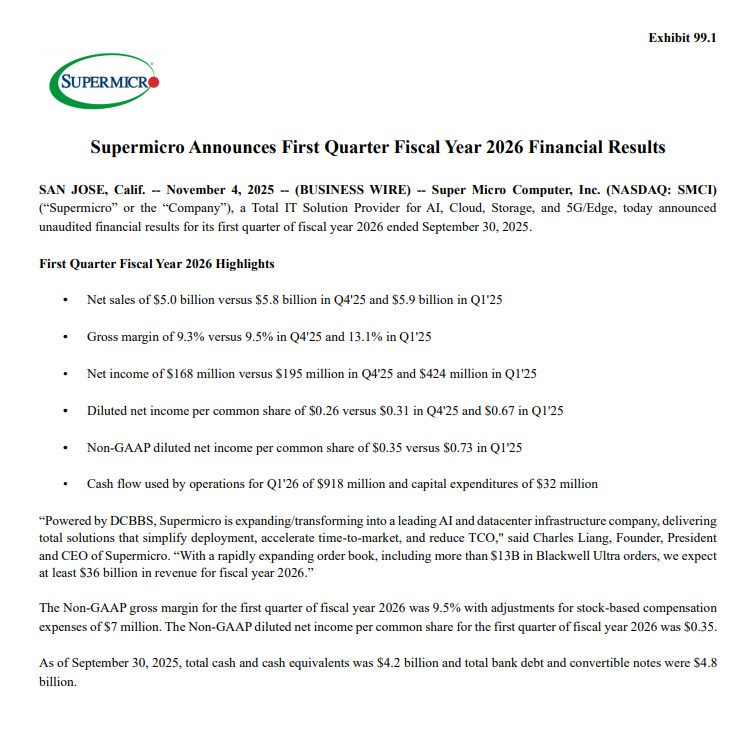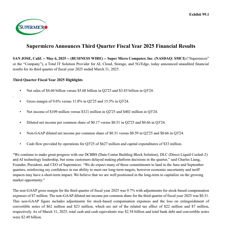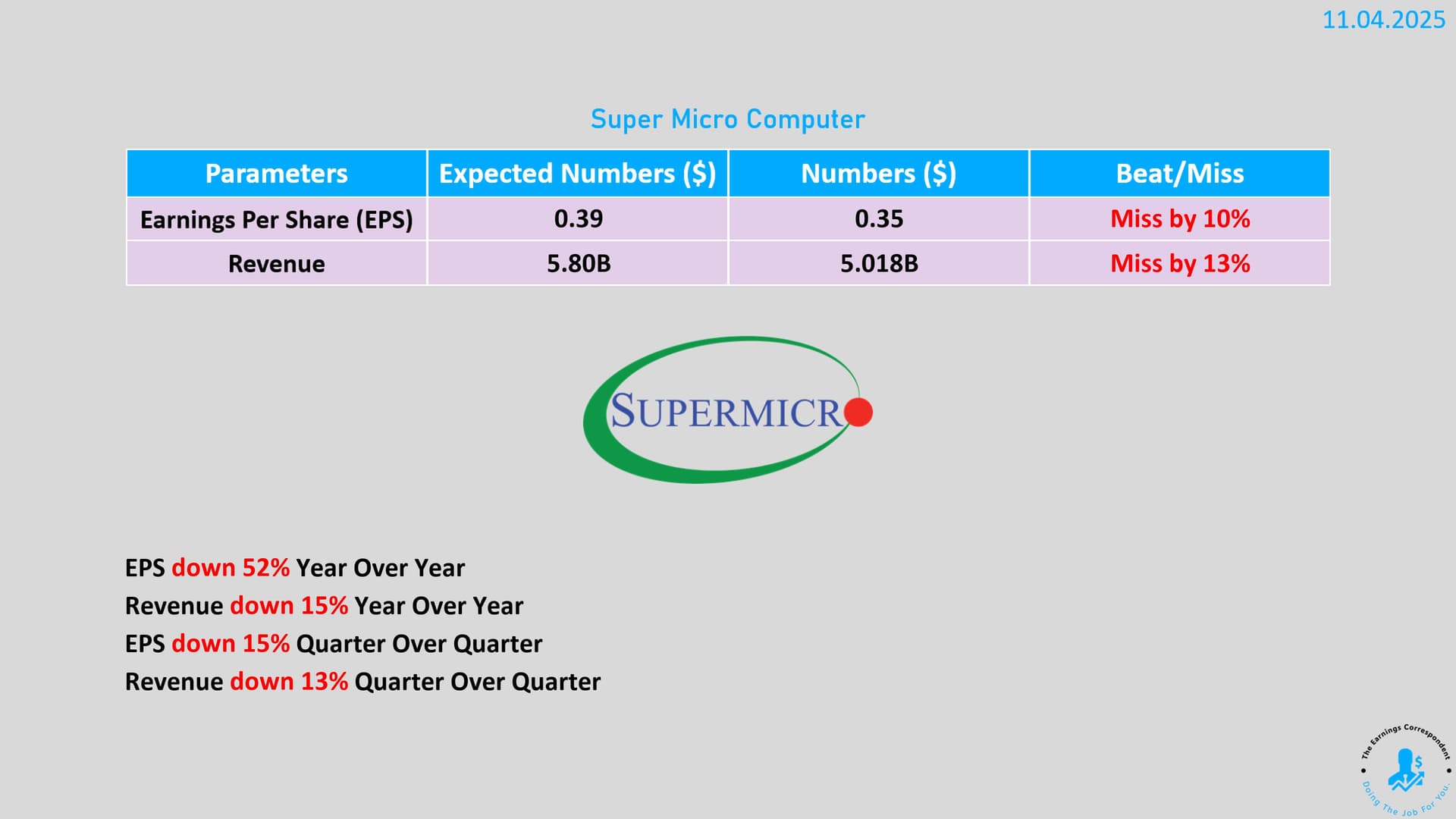 Supermicro veti ihan kohtalaisesti vakaalla kasvulla niin liikevaihdon kuin tuloksenkin osalta - toisaalta jäi hieman odotuksista ja lisäksi tässä nyt monet odotukset ylittäneet julkistajatkin ovat laskeneet pörssissä.
