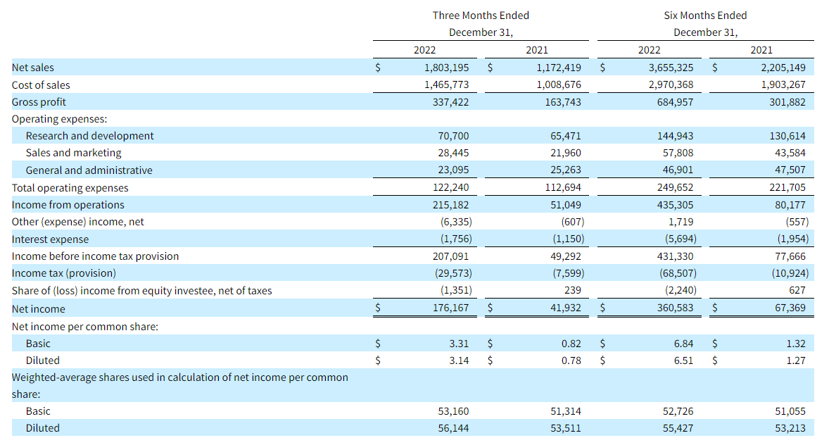 Due to Supermicro’s expanding markets and diversified customer base adopting our rack-scale Total IT Solutions, Supermicro anticipates the following results: