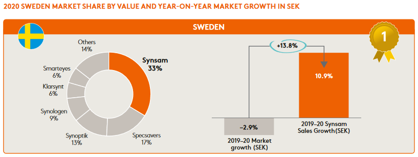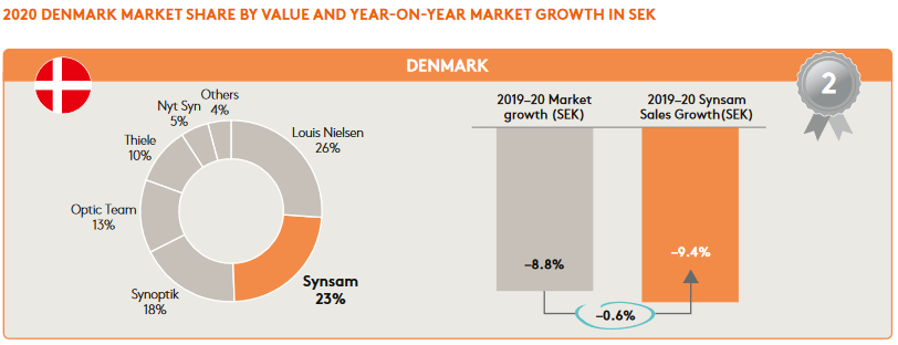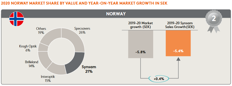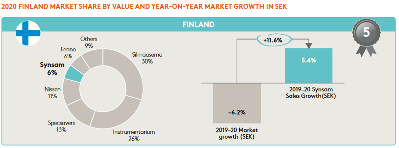 I övriga nordiska länder har Synsam en större marknadsandel och har tagit marknadsandelar snabbare jämfört med GrandVisions butiker. Finland är dock hittills Synsams minsta marknadsområde, men förutom Sverige det enda landet där försäljningen har vuxit 19-20: