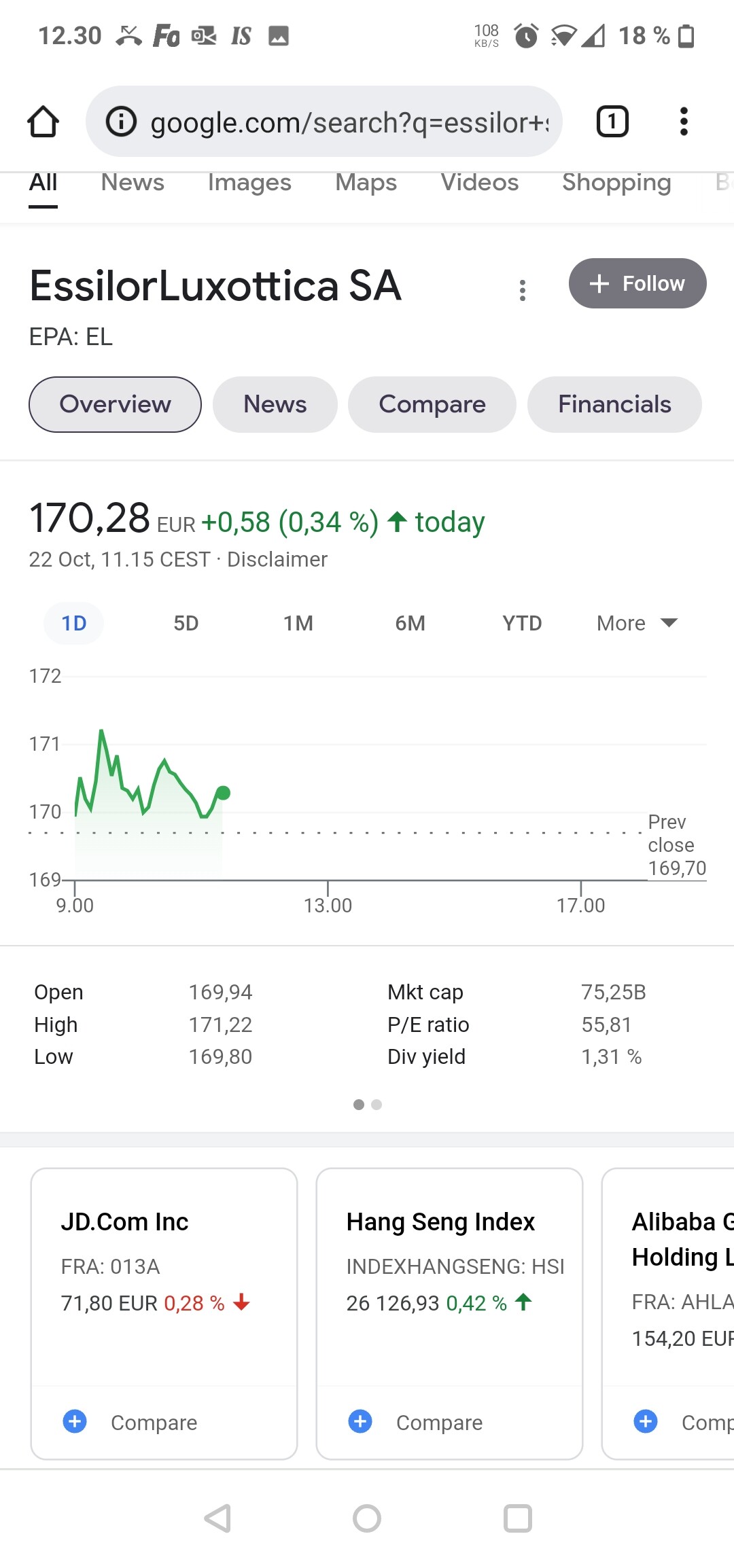 Med samma P/E-tal handlades det långt före budet. Och jag talade om företag inom branschen, EssilorLuxottica är inom samma bransch. Huruvida det är jämförbart eller inte är en smaksak, jag anser att det delvis är det även om det inte är en direkt konkurrent.