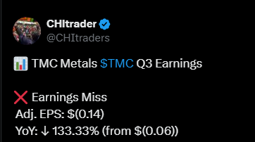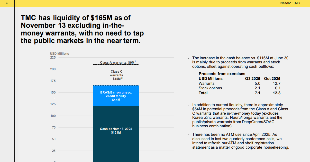 TMC:s Q3 var delvis “på papperet” ful, men orsaken var bokföringsteknisk; den förbättrade ekonomiska bilden för gruvprojektet tvingade fram en stor icke-kassapåverkande royaltykostnad, vilket ökade nettoförlusten. Viktigare mätare ur affärssynpunkt, t.ex. kassabuffert och projektets framsteg mot tillstånd och produktion, såg bra ut.