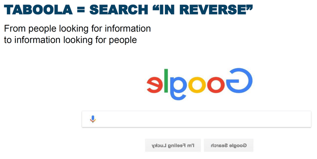 Outbrain toimii hyvin vastaavalla tavalla. Taboolan kanssa 80% markkinaosuus esim. UK:ssa (lähde aiempi seeking alphan artikkeli) vapaan verkon mainoksissa