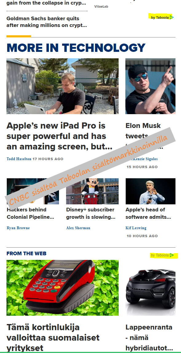 Globaalisti useita mediataloja, joille tärkeää saada kävijät pysymään sivuilla. Sisältömarkkinointi olennaista ja tässä kohtaa Taboolan algoritmit auttavat kävijöitä saamaan kiinnostavaa sisältöä.