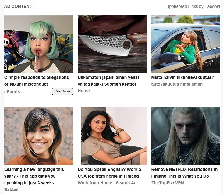 Taboolan motto, “sisältö, josta saatat pitää”, kuvaa paljon sen liiketoiminnan periaatetta. Eli mainokset, joissa näkyy Suositeltu sinulle tms, on usein Taboolan tai kilpailijan Outbrainin tuottamia.