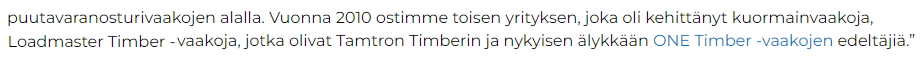 Ehkä yksi mielenkiintoinen case-esimerkki Tamtronin tarjoomasta voisi olla One Timber -kuormainvaaka. Tuskin tämä tuote on kaikkein keskeisin ajuri yhtiössä, mutta voi olla menestyvä tuote omassa segmentissään.