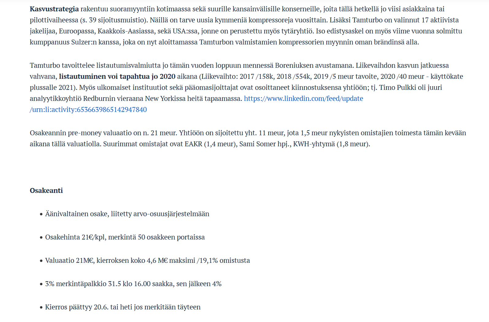 Tällaisia tamturboja pörssi kaipaa ja peukutan rohkeutta, mutta saap nähdä osallistunko tähän itse. Syynään kuitenkin listautumismatskun, kun se aikanaan julkaistaan.