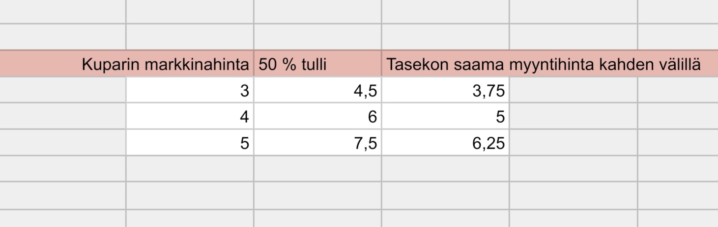 Arvioidessani yhtiön kassavirrantuotto kykyä eri kuparin hinnoilla päädyin tähän arvioon: