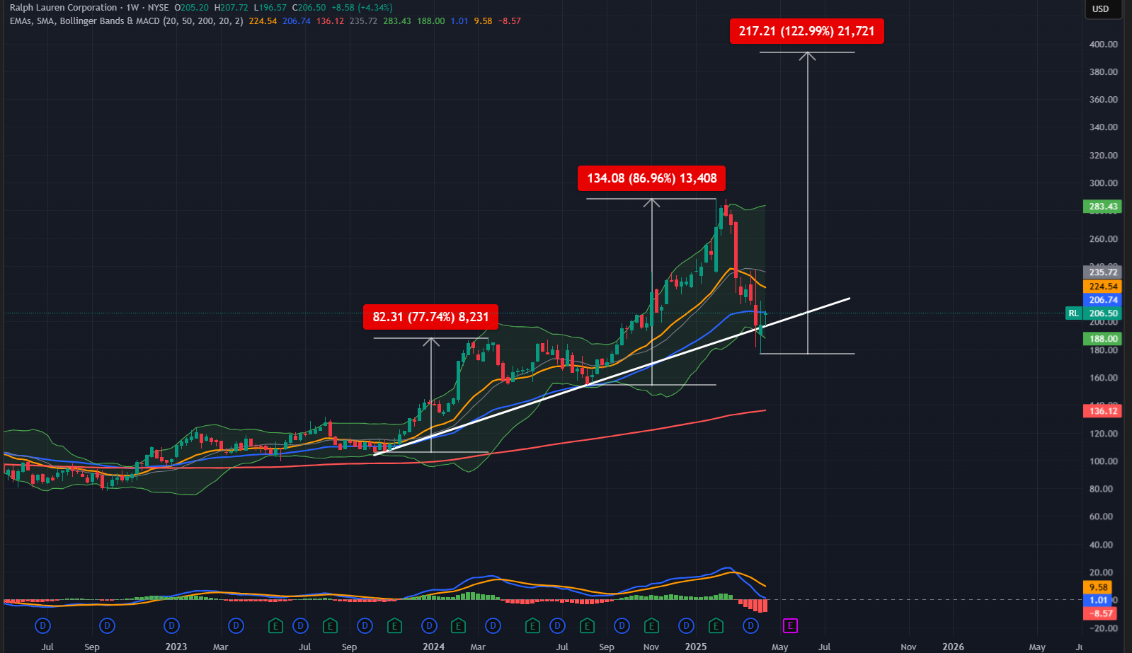 JPM:llä HS ja tämäkin meni daily200 alle. Onko tällä seuraava pysäkki 200$. Onhan tuossa weeklyssäkin hyvin noustu.