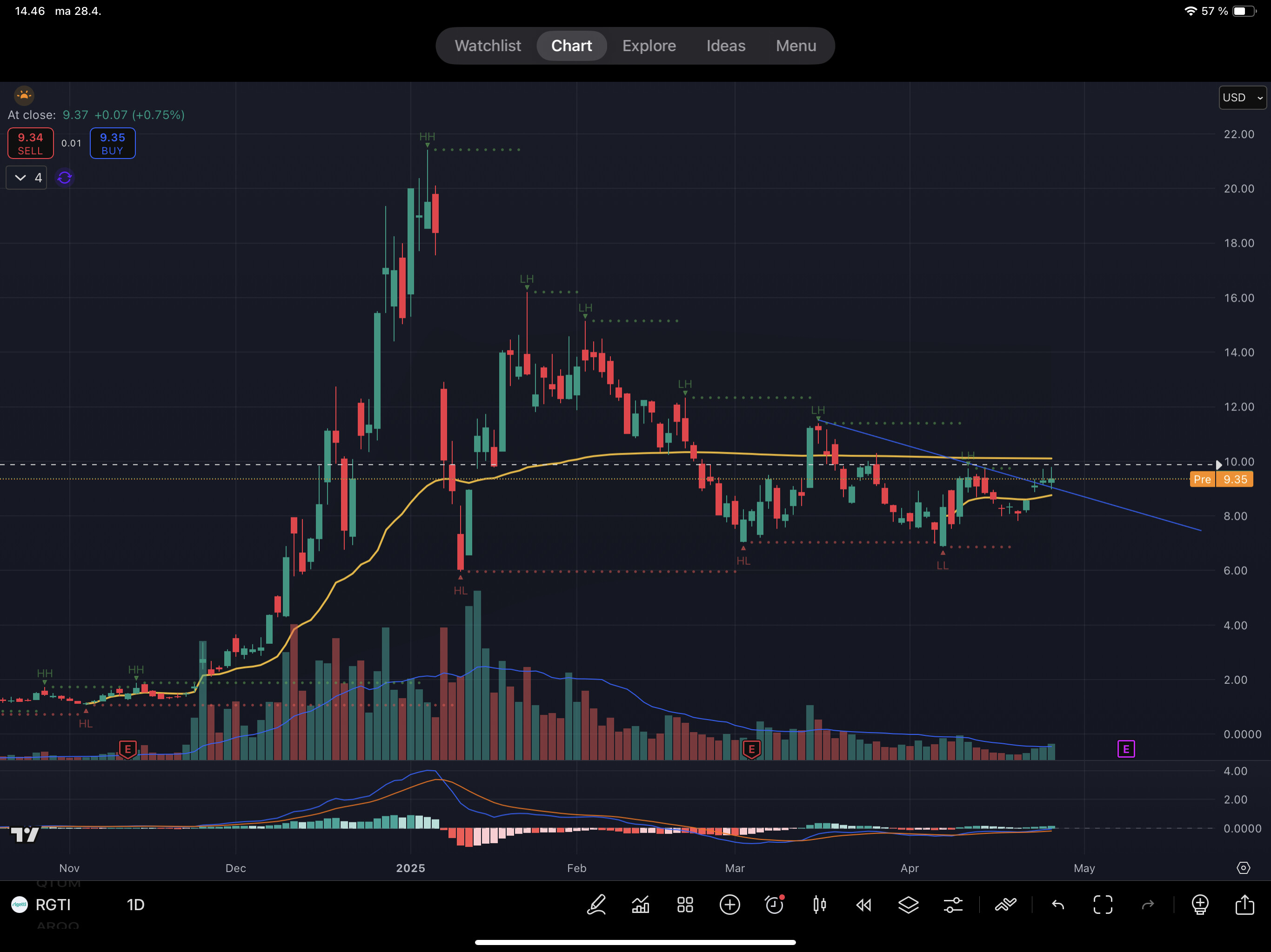 Teknisesti näyttää mielenkiintoiselta nousevalla voluumilla ja 25% shorfloatilla.
