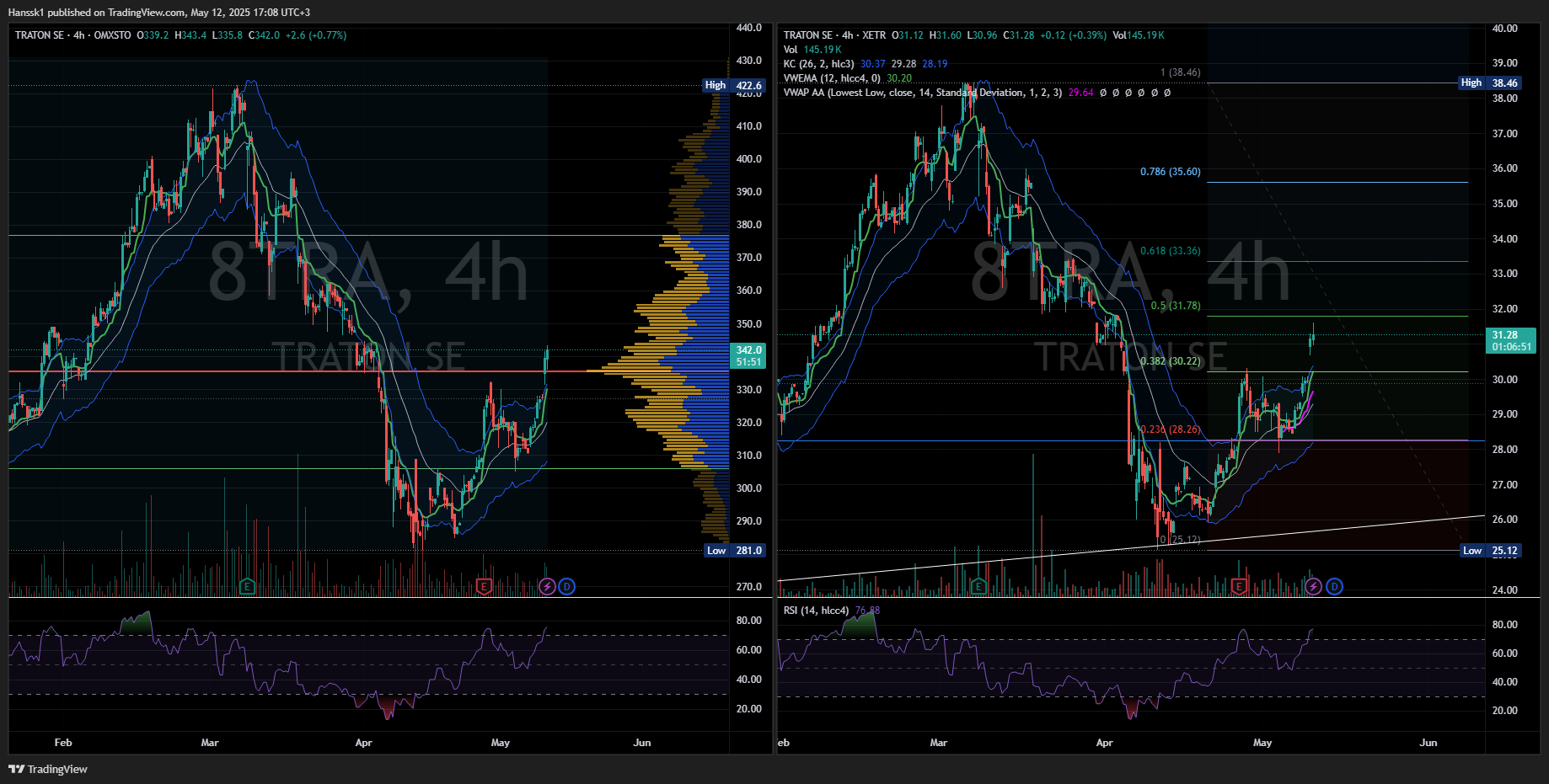 Traton SE Breikkasi 30,22€ tason nätisti niin kuin tuossa aiemmin kirjoitin analyysi pätkässä.