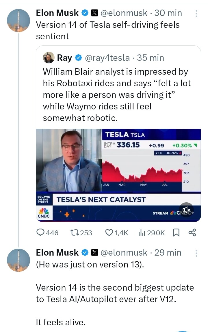 Electrek ei maininnut, että aloittaessaan palvelun Waymo vaati asiakkaita allekirjoittamaan NDAn. Onkohan Tesla vaatimassa nyt NDAn asiakkailta, kun palvelu avataan kaikille? Varmaan pitäisi, kun muuten kaikki turvakuskin interventiot ja kolarit kuvataan videolle.