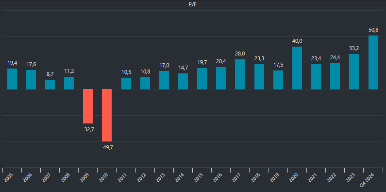 Thales’ EV/EBITDA er 19,3x (2024), hvilket er højere end for de fleste konkurrenter. Aktiens afkast over 5 år har været +252 %, og den højeste pris i 2025 er 276,8 euro. Analytikere forudsiger et kursinterval på 220–340 euro.