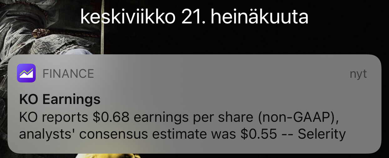 Itse olen ostellut KO:ta jenkki-salkkuuni pikku hiljaa tipottain koronakevään ja nyt alkukesän osaltaan pehmentämään ko. salkun riskiä.