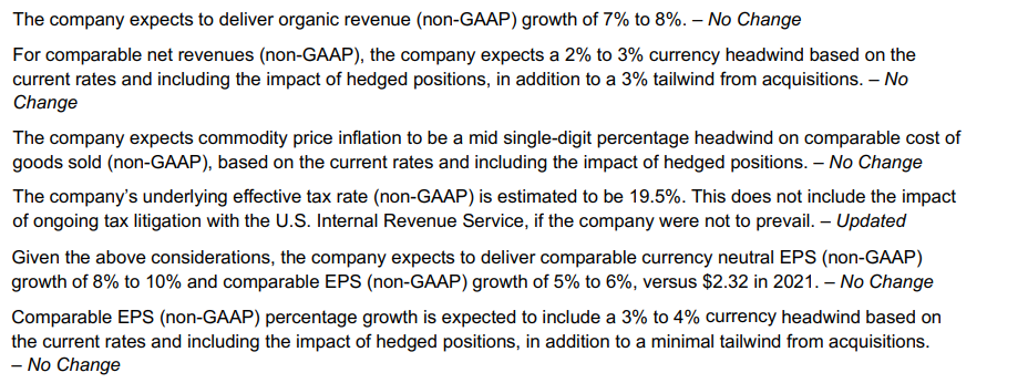 Here is a link to the results as well. I thought I read elsewhere that the dividend would be $0.44 per quarter, but the decision will probably be finalized soon and I couldnât find a source for this. It would be strange, of course, if they didnât raise it to $0.45. Guidance for next year is for 3-5% revenue growth and a slight âsoftening of demandâ in Europe. China, however, should be rocking by Q4/22, pretty much in line with expectations.