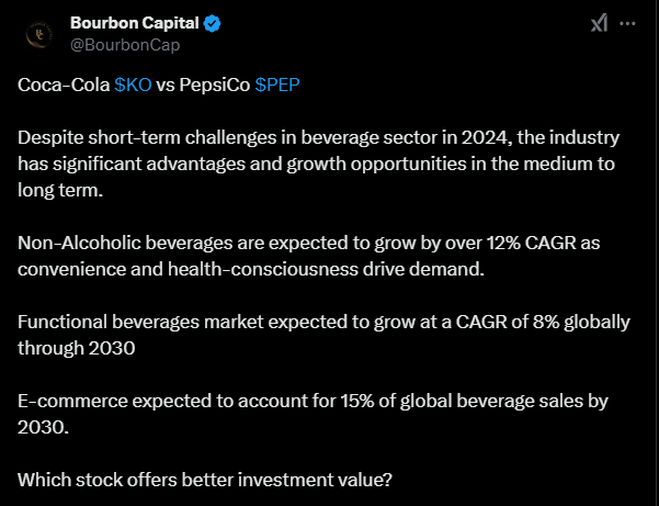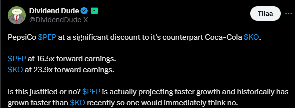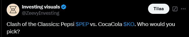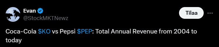 Juomasektorilla on haasteita, mutta myös mahdollisuuksia sanotaan tässä tviitissä, niin ja vertailussa ovat tietysti tässä yhteydessä: Coca Cola vs Pepsi ![]()