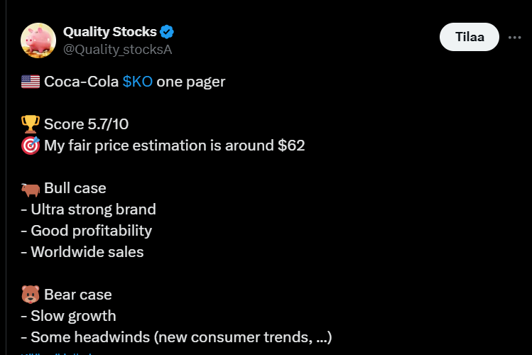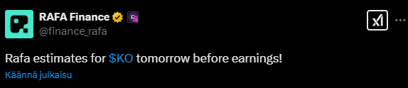 Toimikoon nämä ennakkokommentteina, kun Coca Cola julkaisee tänään tuloksensa. ![]()
