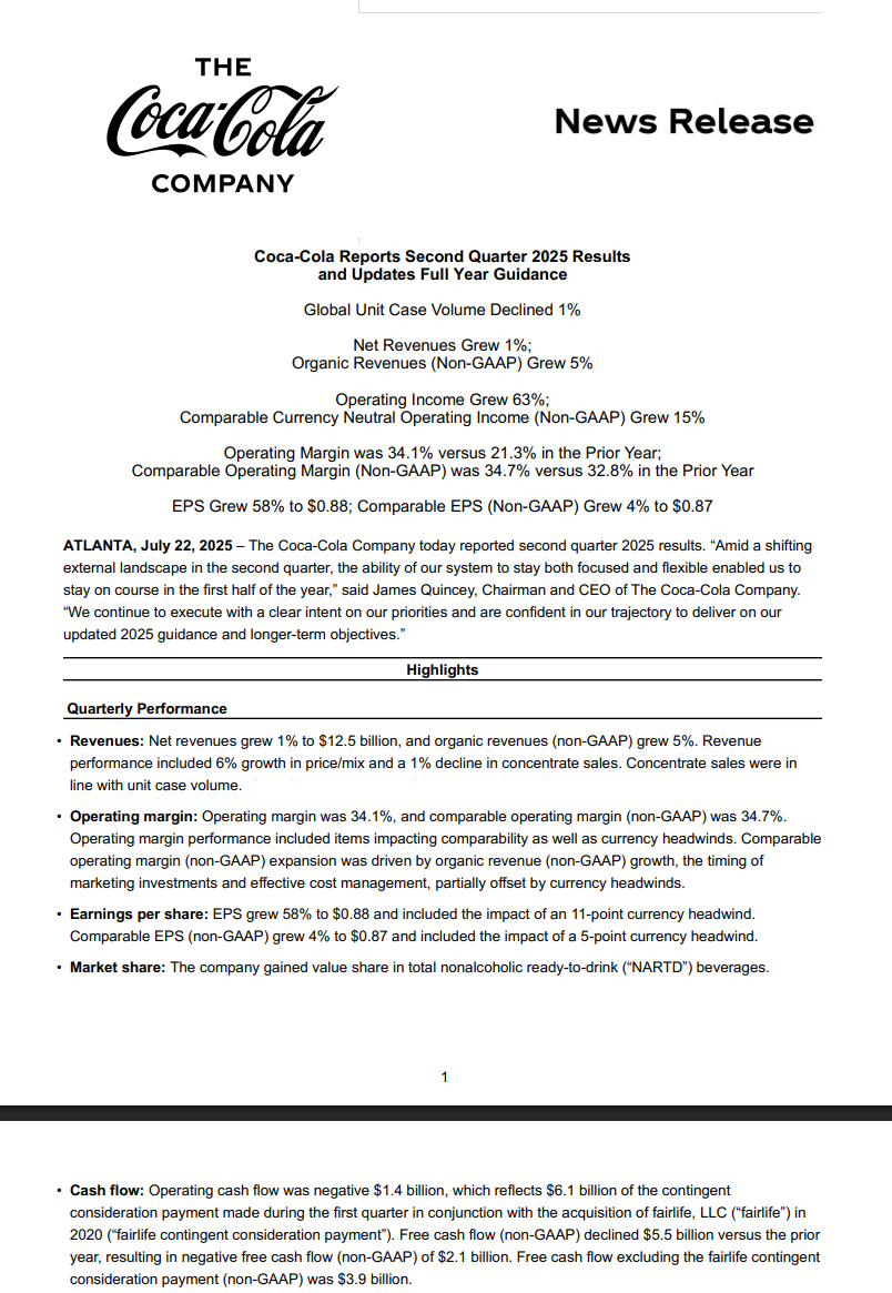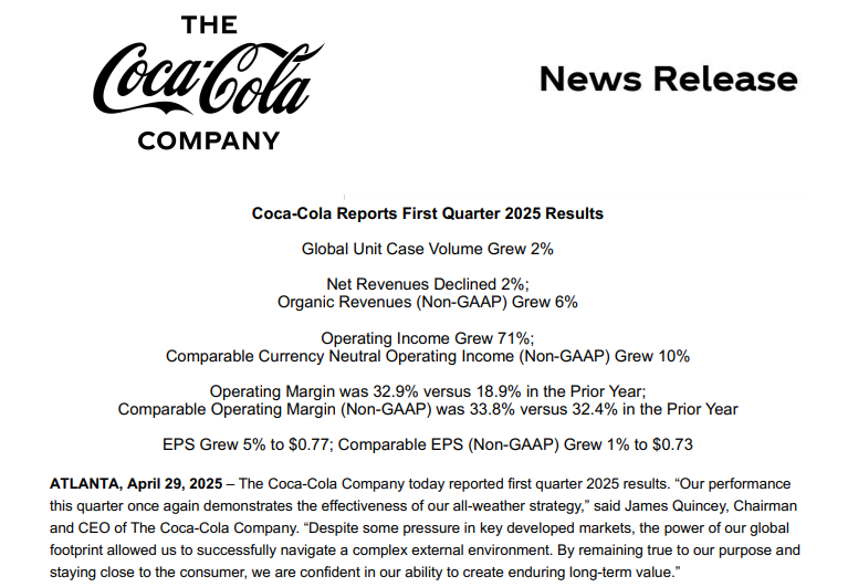 Coca-Cola piti koko vuoden näkymänsä ennallaan, vaikka valuuttakurssit ja mahdolliset tullit aiheuttavat haasteita. Yhtiö luottaa laajaan kansainväliseen toimintaansa ja kykyynsä toimia eri markkinaolosuhteissa. Markkinointia tehostettiin paikallisesti ja tuoteinnovaatioihin panostettiin muun muassa maitotuotteissa ja uusissa juomabrändeissä.