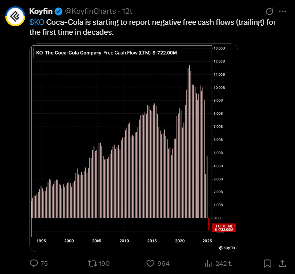 Coca-Cola’s free cash flow (FCF) per share experienced a significant decline in 2024, primarily due to a substantial one-time payment and other contributing factors.