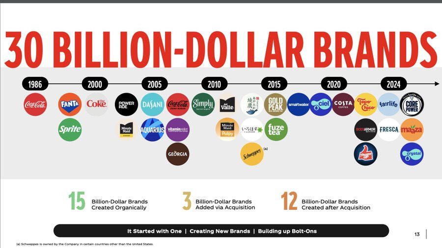 Coca-Cola toimii siten että yhtiö itse omistaa brändit (~35 kpl) ja valmistaa omilla laitoksillaan juomatiivisteet sekä tekee tuotekehitystä ja markkinointia kun taas juomien pullotus ja jakelu on enimmäkseen ulkoistettu paikallisille ja alueellisille pullottajille. Suomessa pullottaja on Sinebrychoff jonka omistaa Carlsberg.