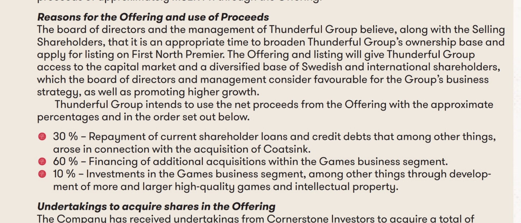 Uskoisin että Thunderful Distributionin liiketoiminta pysyy melko vakaana jatkossakin, mutta suurta kasvupotentiaalia en siinä näe. Odotankin siis suuria tuolta Thunderful Gamesin puolelta ja siksi aion merkitä osakkeita tässä annissa.