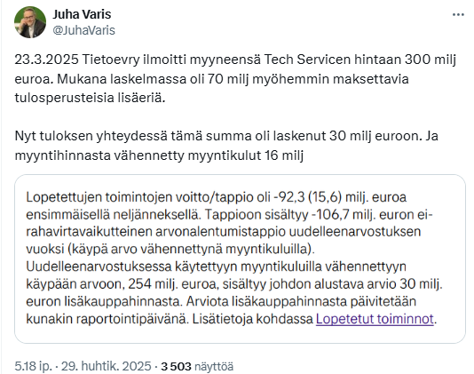 Tietoevry has recalculated for 2024, taking into account the sale of Tech Services.