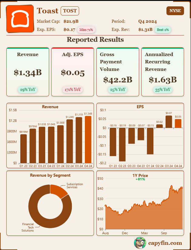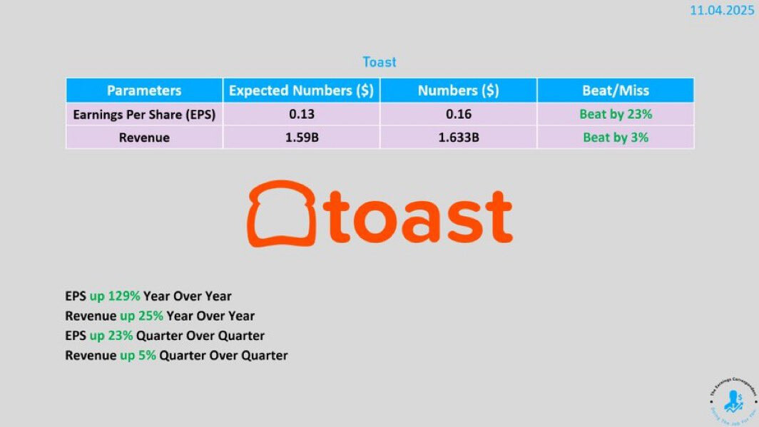 Tämän kuun alkupuolella Toast julkaisi Q3-tuloksensa.