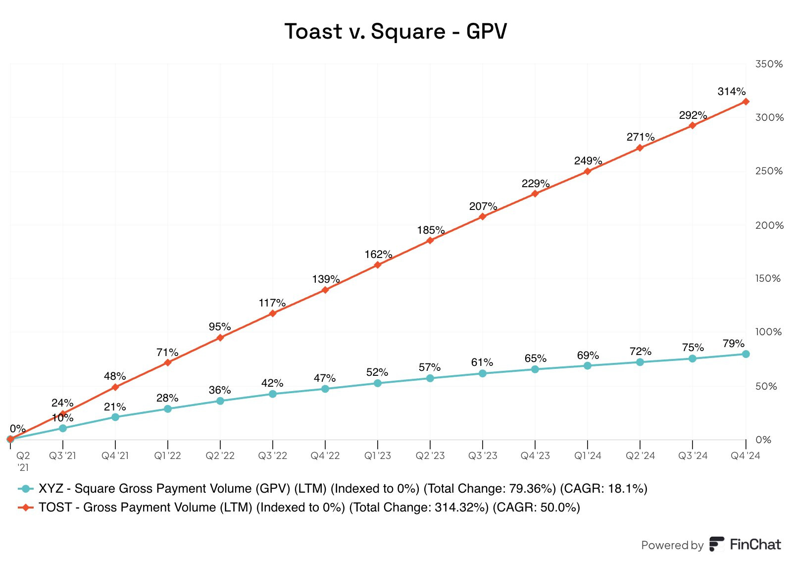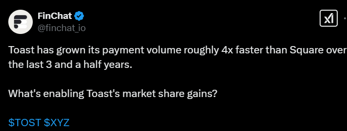 Toastin maksutapahtumien yhteisarvo on kasvanut noin neljä kertaa nopeammin kuin Squarella viime vuosina. Toastin menestyksen taustalla on osin ainakin juuri ravintola-alan tarpeisiin räätälöity strategia, integroidut ekosysteemit, joustava hinnoittelu sekä käyttäjäystävälliset/helppokäyttöiset järjestelmät ja lisäksi kattava asiakastuki.