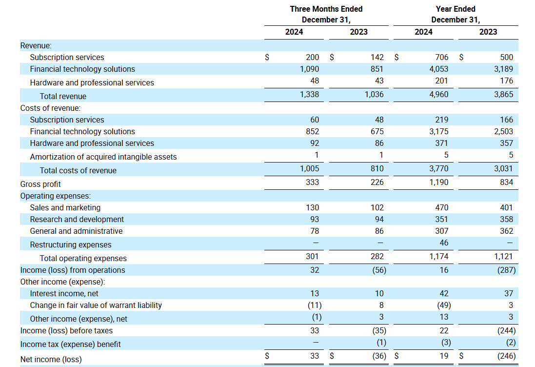 Yrityksen liikevaihtoon perustuva toistuva tulovirta kasvoi selvästi edellisvuodesta sekä samoin myös maksuvolyymi ja sekä GAAP- että ei-GAAP-perusteinen kate ohjelmisto- ja fintech-palveluissa.