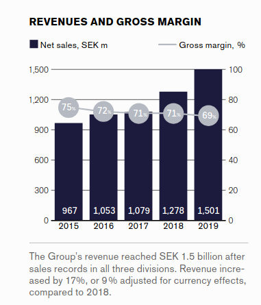 Eikös tuo 2019 liikevaihto, 1 500 msek, muunnu noin 150 miljoonaksi euroksi, eikä 500 miljoonaan? Vuosirapsasta alla oleva. ( Hetken jo ilakoin, että tämähän on iso markkina, jos Tobii menee jo puolessa miljardissa )