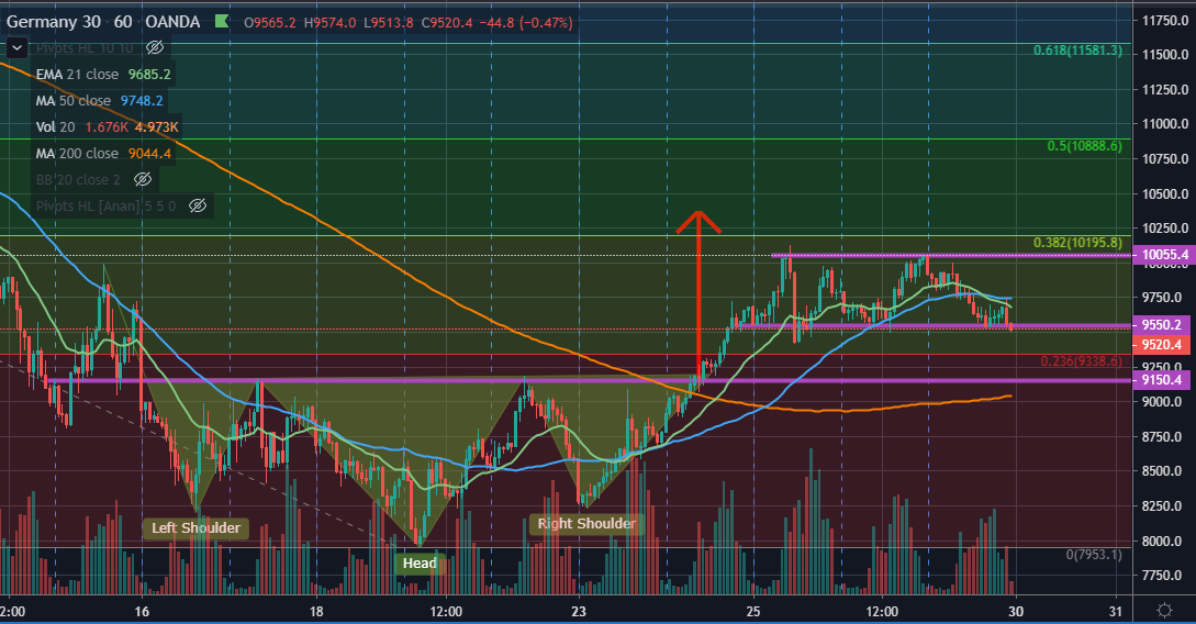 RSI:n ja liukuvien keskiarvojen avulla yritän löytää päivän sisältä yhden tai kaksi paikkaa positioille. Itsellä myös tarkkailussa 5/15 ja 60min TF:t. Helpottaa itseä tällä hetkellä, jos treidin ajalle ei osuisi mikään iso uutinen tai NYSEn avaus. Voisin toimia pelkän analyysin pohjalta treidin ajan. Jätin tosin Sepen shortin viikonlopun yli, kun yleisesti itsestä tuntuu, että poikkeustilanne alkaa kolahtaa ihmisiin ja kaikkeen enemmän ja enemmän.