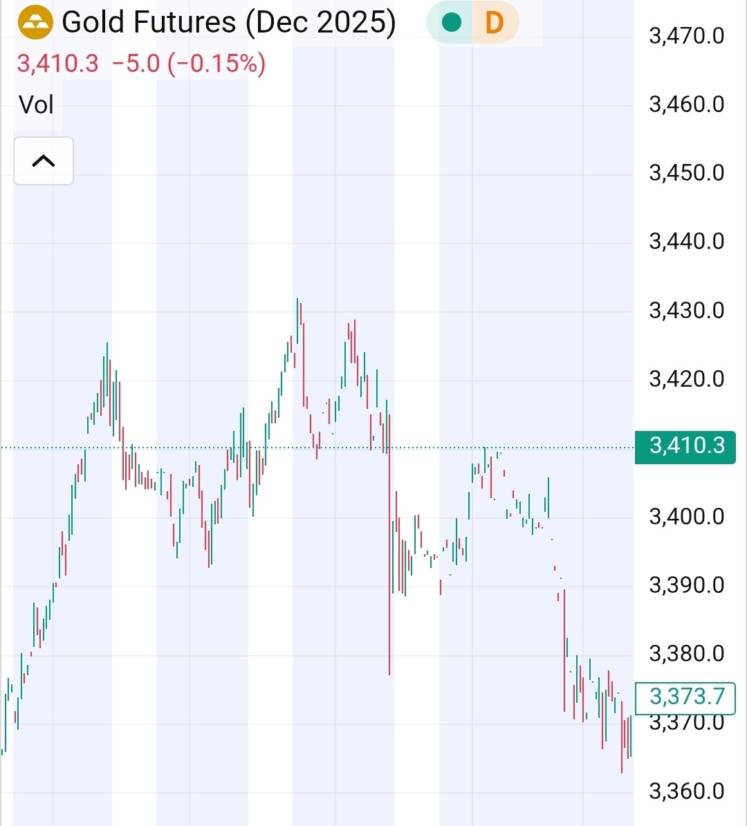 However, the financing level does not support this. The original financing level was 3390. If we assume an average gold price of 3300, the daily margin accumulated between 26.6-8.7 is (3300*(1+0.03/365)^13-3300) = ~3.5 USD. On top of that comes the futures spread, which has been over 50 USD all along. Thus, the financing level should be over 3440 after the rollover.
