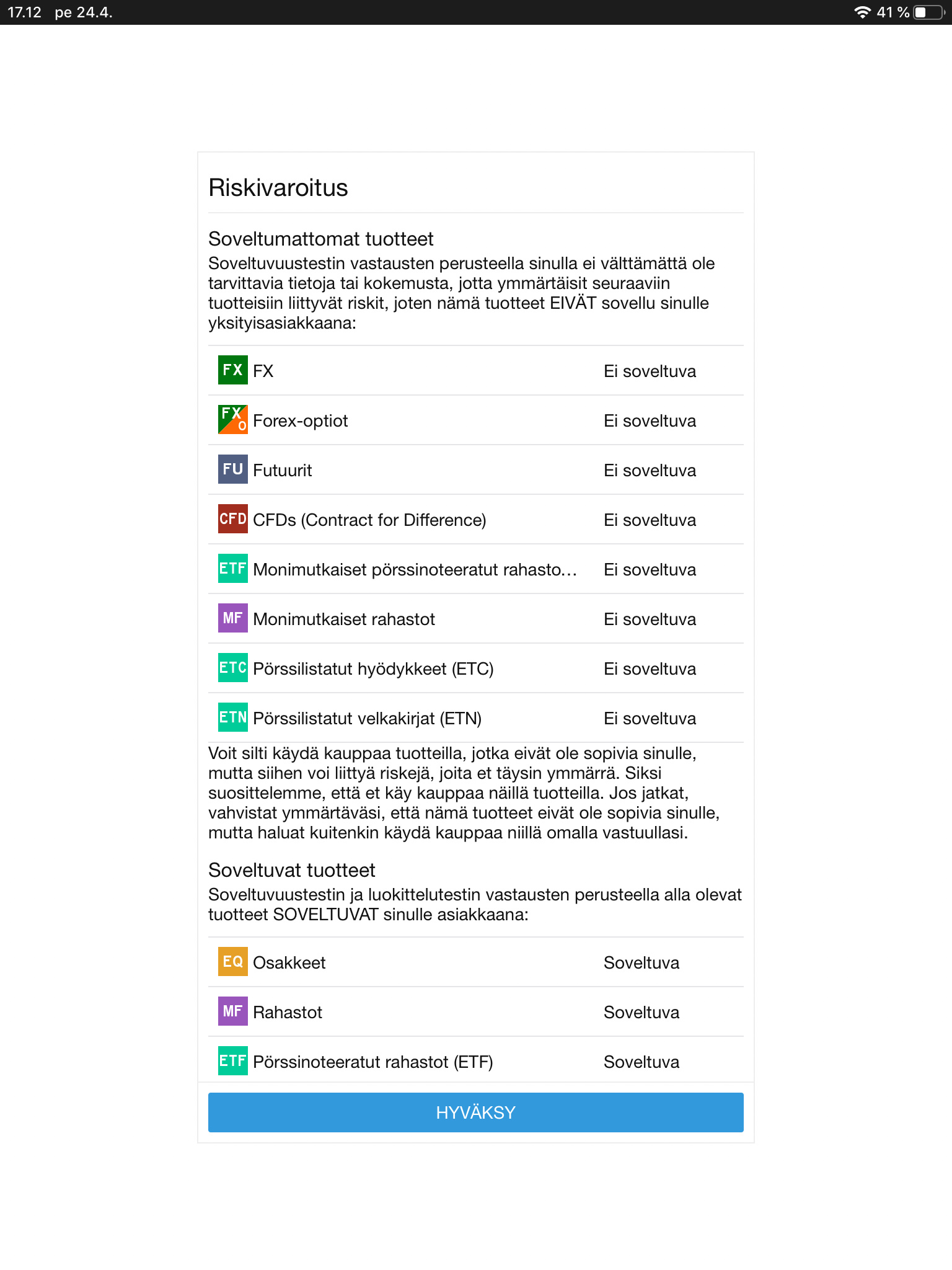 Japp, det där kravet på godkännande kommer alltid när man loggar in. För CFD är ordet “Ej tillämpligt” ganska roligt, och i princip helt korrekt. Bättre vore “skattemässigt olönsamt”.