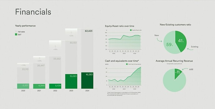 Ulkona on 58 636 918 osaketta ja päivän 667 kruunun kurssilla markkina-arvoksi tulee 39,1 miljardia kruunua. Yhtiön ohjeistuksella P/S olisi 21. Yhtiö on nettovelaton, joten EV/S on pari pykälää alempi. Analyytikot odottavat tälle vuodelle 1950 miljoonan liikevaihtoa, eli yhtiön ohjeistamaa enemmän.