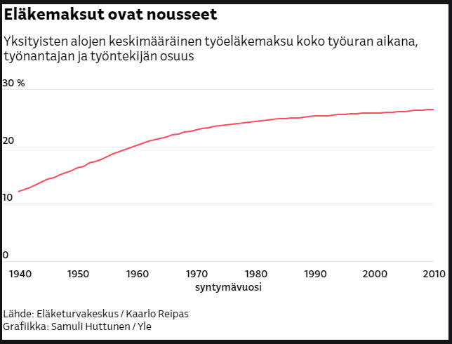 Tässä ei mitään uutta varmasti ketjulaisille ole, mutta YLE tehnyt ihan näppärän laskurin siitä, kuinka paljon mikäkin ikäluokka saa eläkettä maksamiansa eläkemaksuja vastaan. Ei tämä kovin reilulta meiningiltä näytä, nyt kun tätä näin visualisoituna ja yksinkertaistettuna katsoo. Eiköhän olisi aika vähän leikata myös niistä eläkkeistä vihdoin?