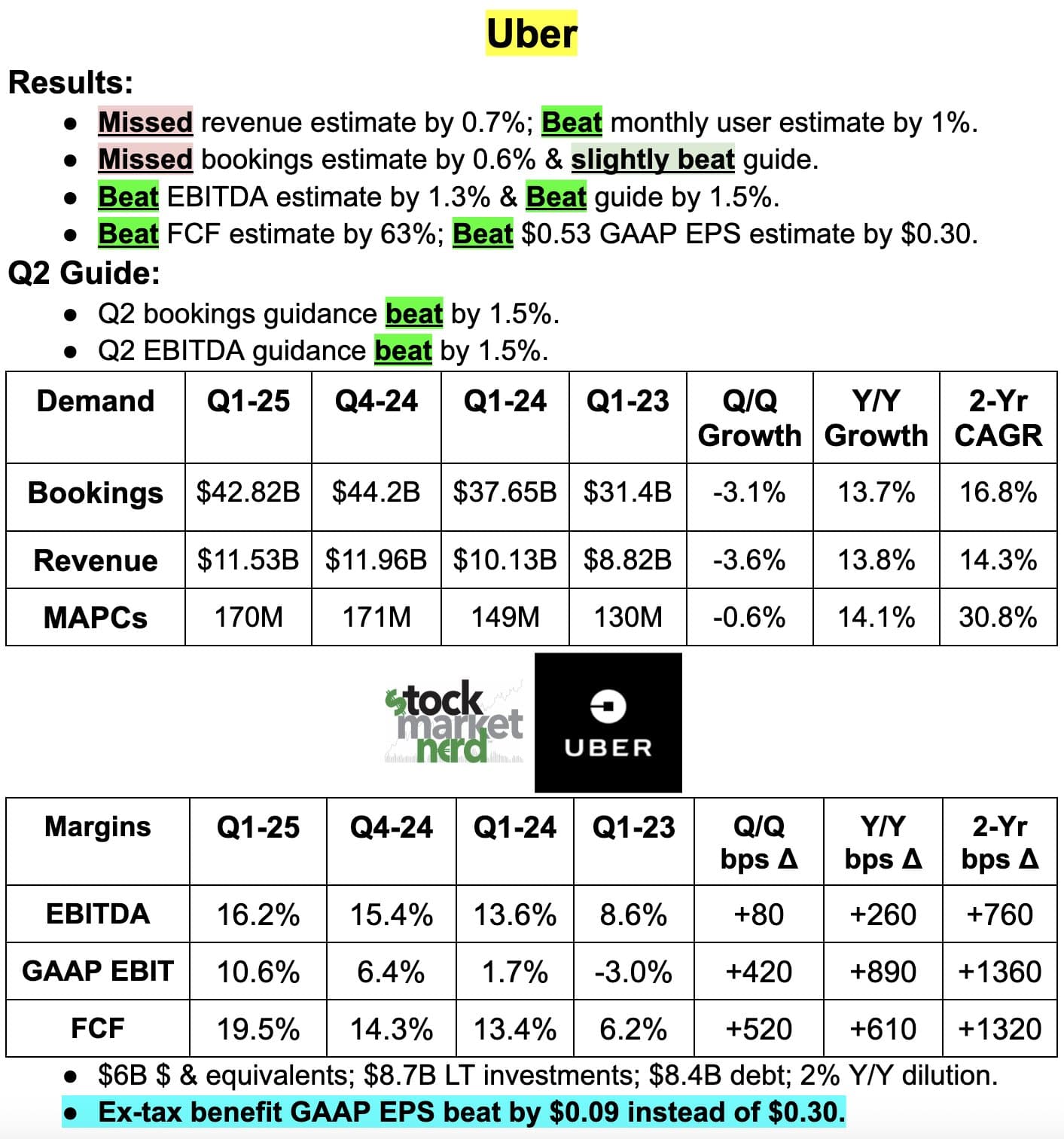 Asiakaspysyvyys on ennätyskorkealla maailmanlaajuisesti, niin Uber teki ennätystuloksen ja vapaan kassavirran. Yhteistyö Waymon kanssa on käynnistynyt Austinissa lupaavasti.
