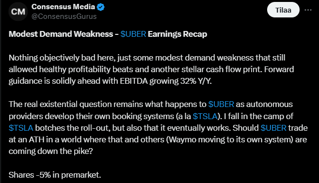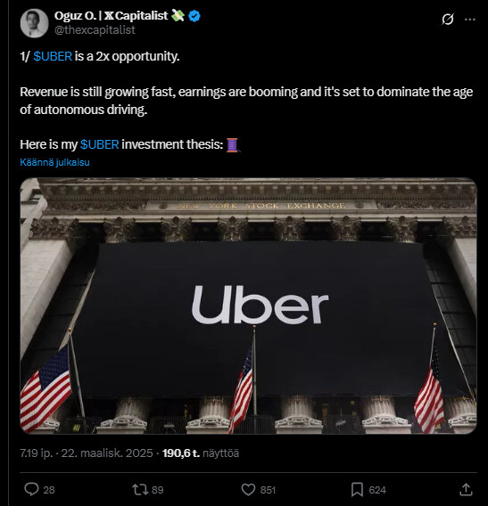 Tässä on mielenkiintoinen tviitti Uberista ja miksi se on kiinnostava. ![]()