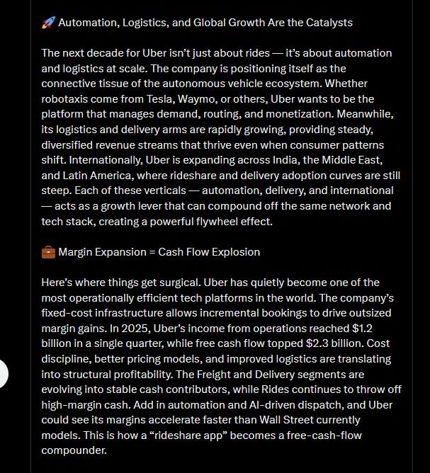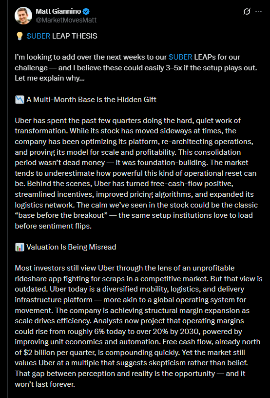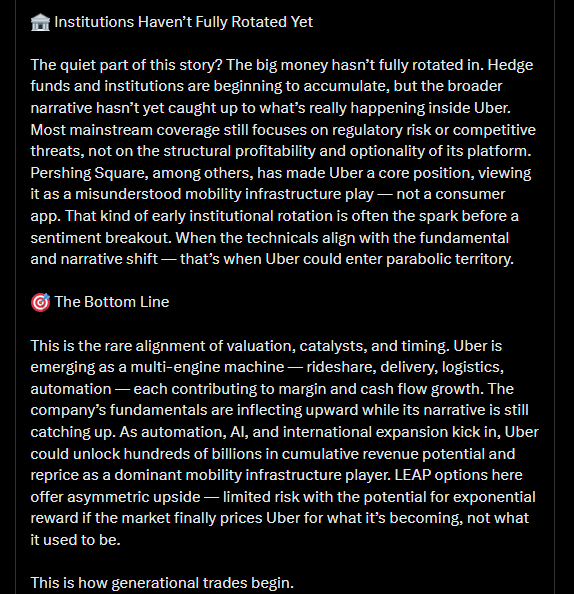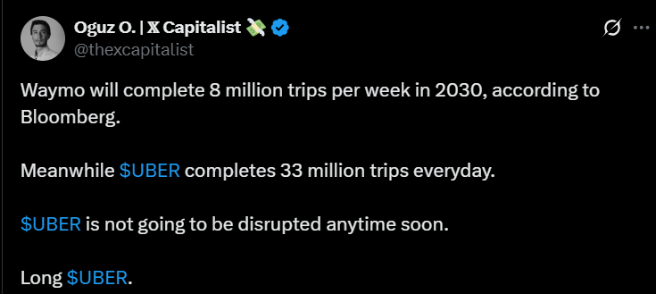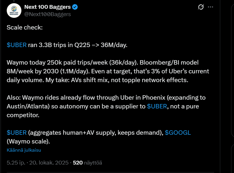 Alla olevassa tviitissä olleen pointtina, että Uberissa on perusasiat kondiksessa ja saattaa olla lähdössä raketoimaan.