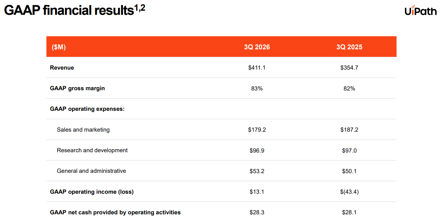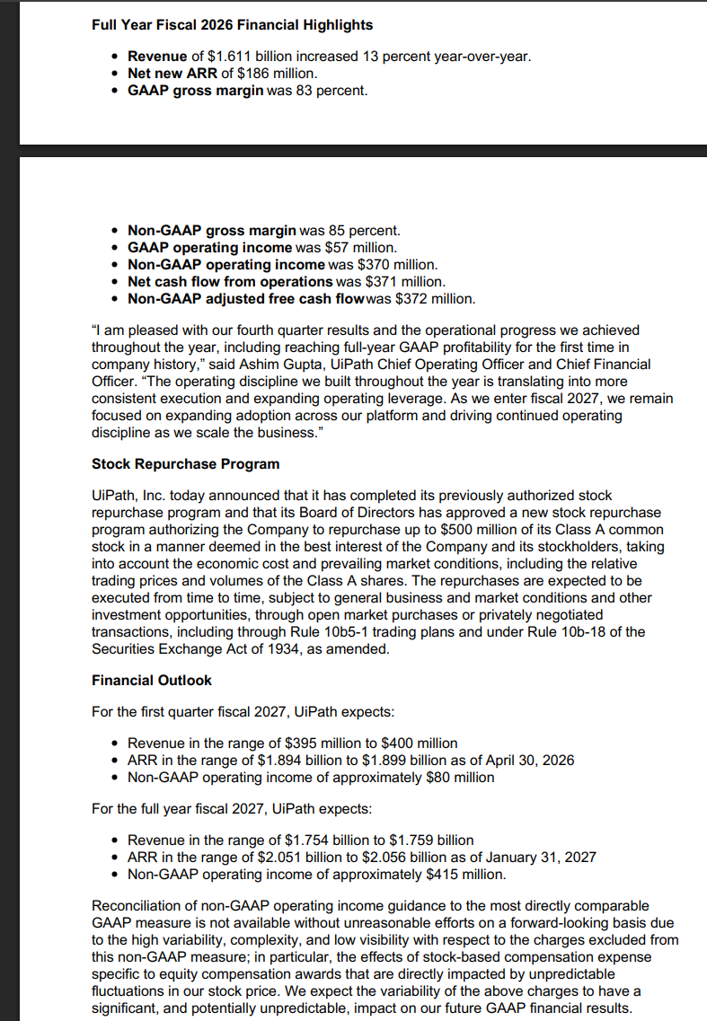 UiPath er nettogældfri og med en klar margin. Balancen viser gæld på 926,6M$ og aktiver på 2592,3M$. Størstedelen heraf er kontanter og kortfristede investeringer.