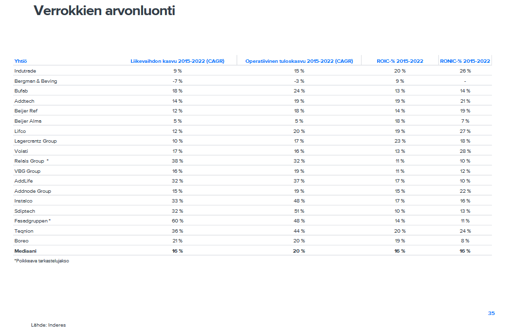 Ei voi kuin ihailla esimerkiksi Addtechin, Indutraden ja Lifcon lukuja, etenkin kun suhteuttaa, että yhtiöt alkavat ainakin pohjoismaisessa mittakaavassa olla varsin isoja köriläitä