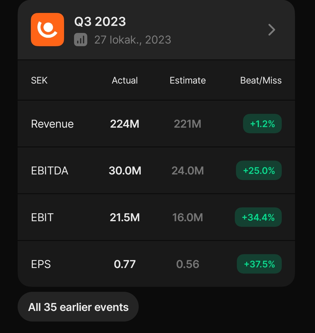 Kyllähän tässä tulee hymy huulille, kun yleensä Q3 ollut vuoden ei-vahvimpia neljänneksiä. Jos kannattavuuskäänne menee läpi ja EPS taso yltäisi tähän jatkossakin… Olisi annualisoitu tulos/osake aika mieluinen nykyhintaan nähden🤭