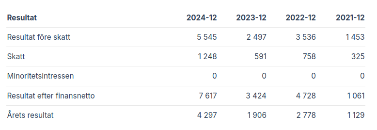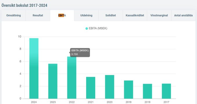 On Twitter, there was a good comment regarding the valuation, stating that the company’s (Autofric) EBITA in 2024 was a total of 9.768 MSEK, which translates to an EBITA margin of 16.28%. At this level, the multiple paid for the company (EV/EBITA) falls between 5.6x–7.7x, depending on a potential additional purchase price in 2028. EBITA has grown by an average of 22% per year between 2017–2024, so the growth has been quite impressive.