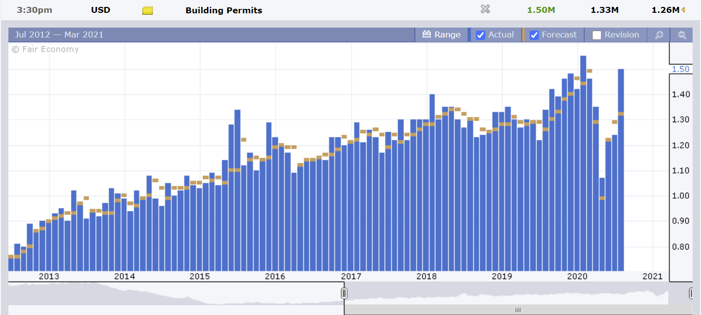 USA:s byggstarts- och bygglovssiffror för juli, publicerade den 18.8.2020, låg betydligt högre än prognoserna och indikerar åtminstone tills vidare en förbättrad konjunktur efter coronanedgången. På månadsbasis nådde man redan mycket nära förra vinterns siffror. Försäljningen av begagnade bostäder hoppade också över prognoserna i förra veckans statistik.