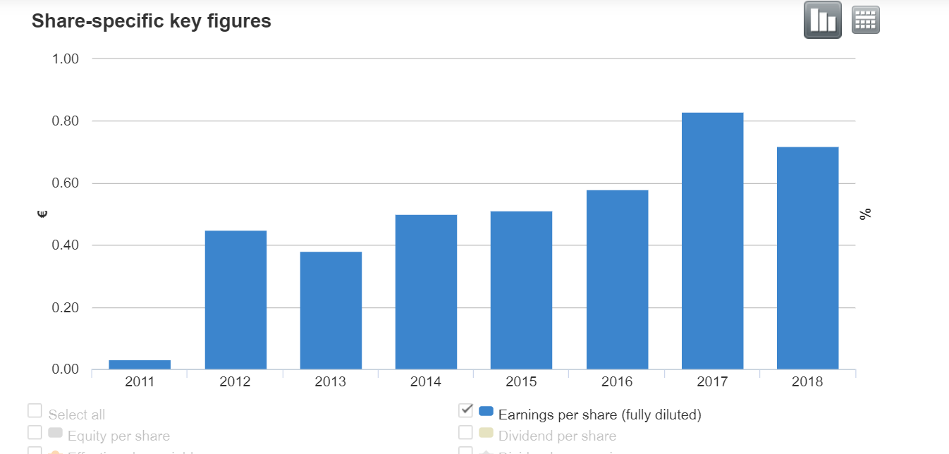 EPS för 2020 skulle då bli 0,83 euro och vid P/E 20x borde aktiekursen vara 16,5 euro.