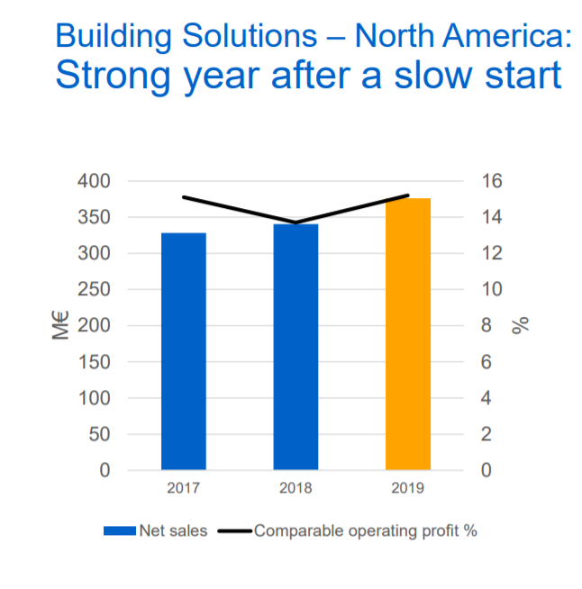 Bolaget är alltså förvånansvärt lite exponerat mot den finska och de nordiska byggmarknaderna. I USA går byggmarknaden betydligt bättre. Bolaget gjorde också en betydande resultatförbättring i just USA under Q4 och avyttrade även sin svaga infrastruktur-enhet under förra året.