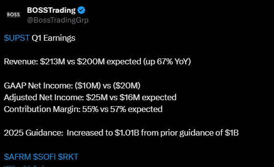 Upstartin tuloksesta tykättiin, tätä kirjoittaessa jälkimarkkinoilla yli 20 pinnaa nousussa.