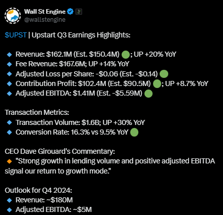 Upstart Announces Third Quarter 2024 Results | Upstart Network, Inc.