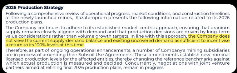 Apparently, Kazatomprom is reducing its production because it doesnât see demand at a level that justifies producing at 100% capacity. What do you think about this?