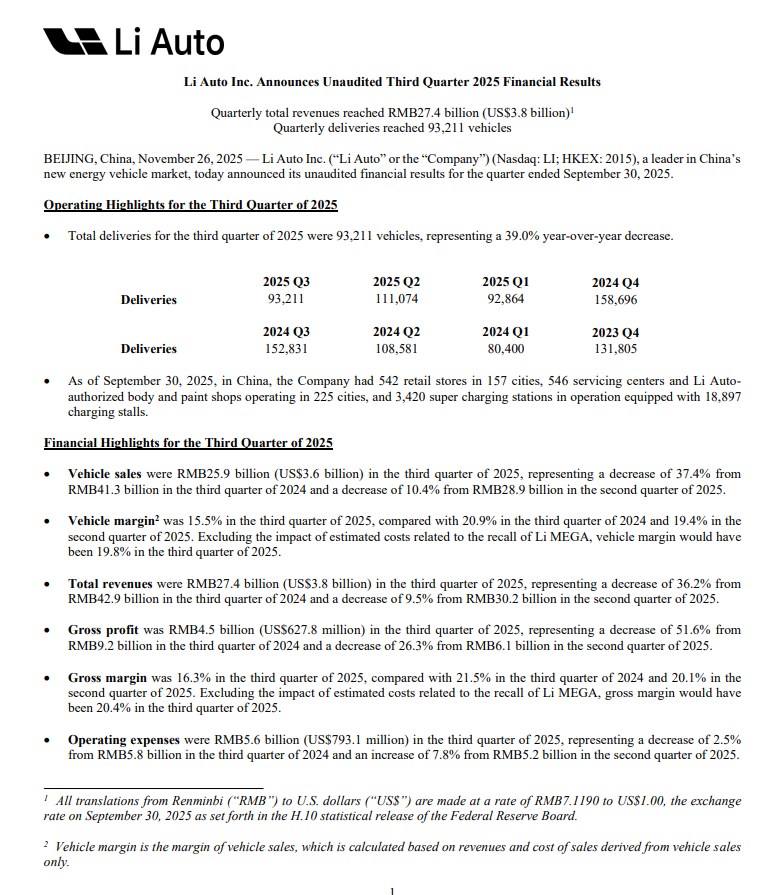 Li Auto’s Q3 didn’t exactly go to plan, but it was probably partly expected. Deliveries fell by nearly 40 percent, revenue collapsed, and both earnings and cash flow were well in the red, although the cash position is apparently in good shape.