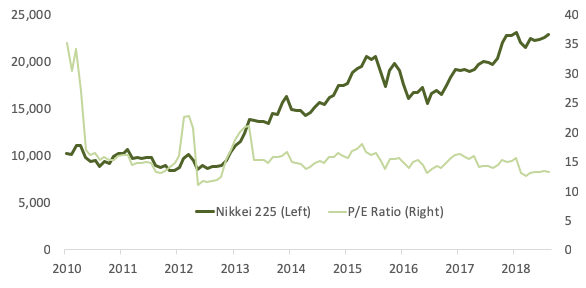 Hyvä artikkeli Japanin keskuspankin osakeostoseikkailusta: huolimatta rahan pumppaamisesta etf:iin on Nikkei225sen P/E-luku itseasiassa laskenut vuosien varrella (tulokset nousseet kursseja nopeammin) ja yksityissijoittajat ovat edelleen varovaisia. ![]()